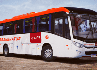 Fotos internas do veículo: sendo painel, identificação de veículo e empresa, além do salão de passageiros com validadores reais e com animação