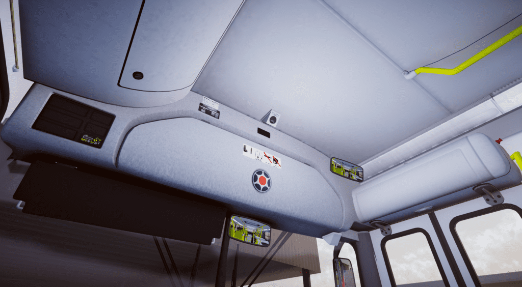 - Filtro de ar externo OF-1722M, alerta de parada solicitada (itinerário interno), plaquetas de fabricação da Marcopolo e MB (3d), batentes da porta central, borracha do vidro traseiro: Polimatia Design