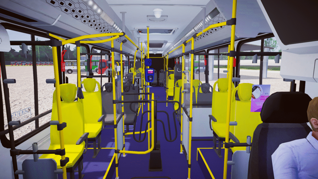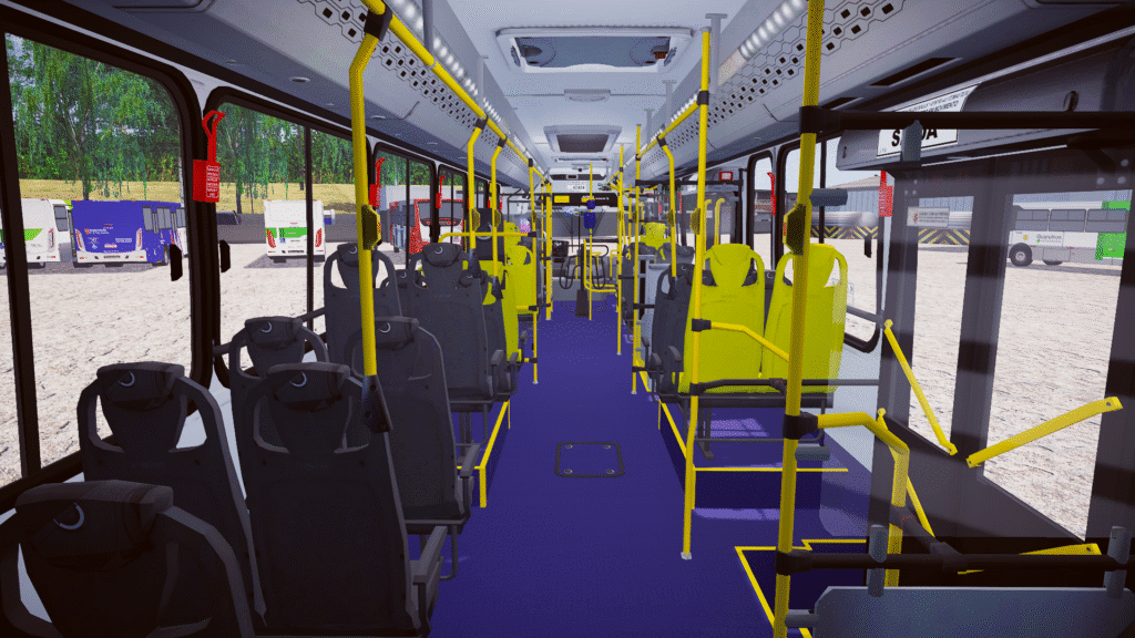 Fotos internas do veículo: sendo painel, identificação de veículo e empresa, além do salão de passageiros com validadores reais e com animação para o padrão Fortaleza/CE.