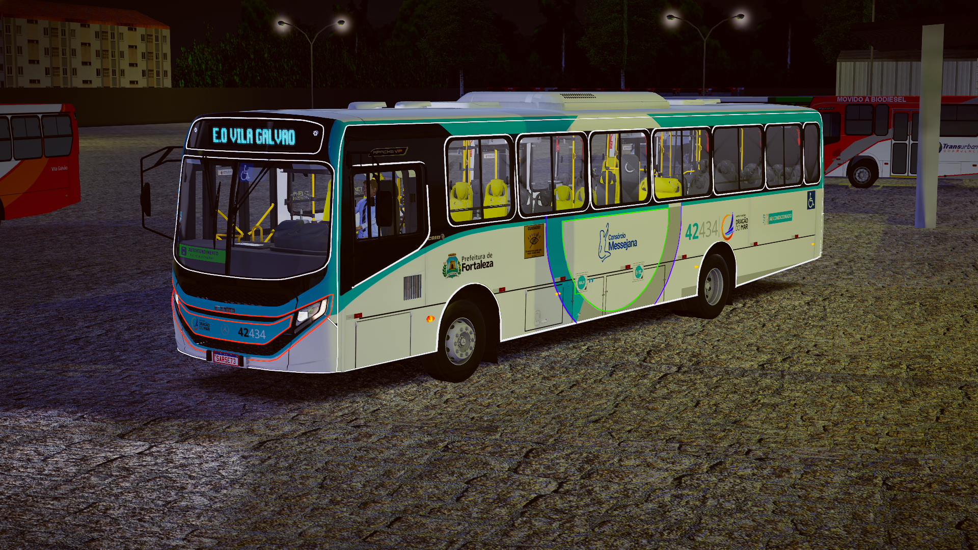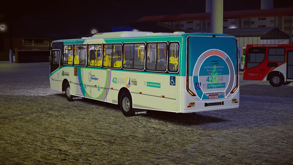 O modelo traz o Caio Apache Vip V sobre o chassi Mercedes-Benz OF-1721L BlueTec 6, amplamente utilizado no transporte urbano pela sua eficiência e conforto. A pintura natalina aplicada ao padrão Dragão do Mar de Fortaleza/CE foi recriada com atenção aos detalhes, garantindo visual fiel, proporções realistas e ótima integração com os mapas do jogo, proporcionando imersão tanto na condução quanto na ambientação temática.