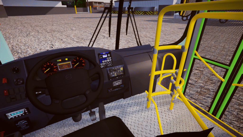 Fotos internas do veículo: sendo painel, identificação de veículo e empresa, além do salão de passageiros com validadores reais e com animação para o padrão OMSA.
