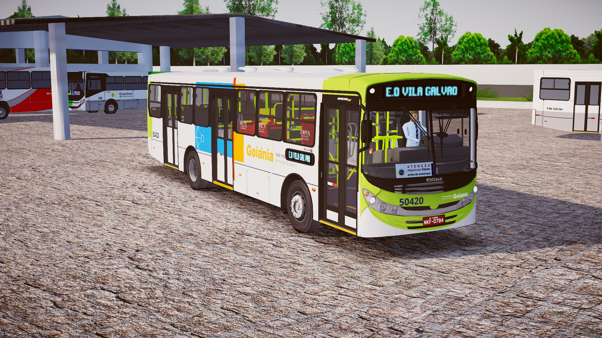 O Caio Apache Vip II, montado sobre o chassi Volkswagen 17.230 EOD, é reconhecido pelo design característico de sua geração, boa robustez mecânica e ampla utilização em sistemas urbanos pelo país. Nesta versão no padrão Goiânia/GO, o mod reproduz com atenção o esquema visual típico da capital goiana, o interior urbano e os detalhes operacionais dos veículos que circulam na cidade, proporcionando uma experiência imersiva e fiel à realidade local.
