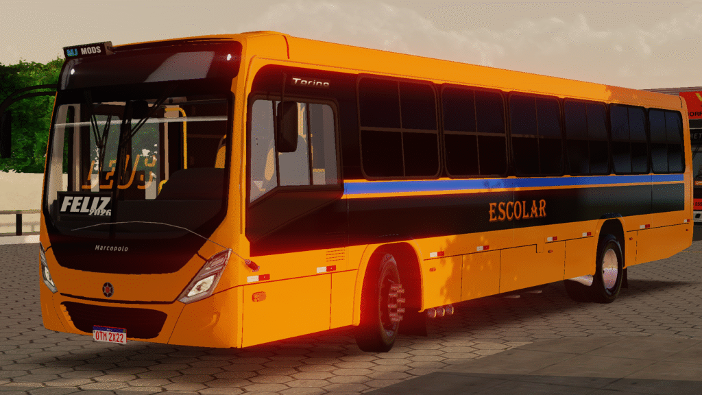 O Marcopolo Torino New Plus, montado sobre o chassi Volkswagen 17.260 ODS Euro V e no padrão Escolares, chega ao Proton Bus Simulator representando com fidelidade os ônibus urbanos que circulam no escolar.