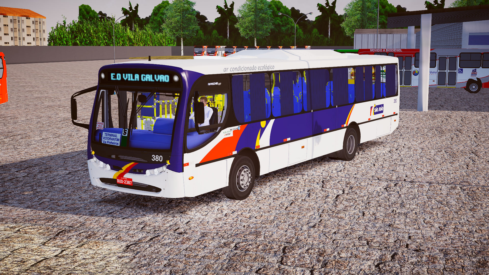O Caio Apache Vip, montado sobre o chassi Volkswagen 17.230 EOD, é reconhecido pela robustez mecânica, bom desempenho operacional e ampla utilização em sistemas urbanos pelo país. Nesta versão no padrão São João de Votorantim/SP, o mod reproduz com atenção o esquema visual característico, o interior urbano e os detalhes operacionais dos veículos que atuam na cidade, proporcionando uma experiência imersiva e fiel à realidade local.