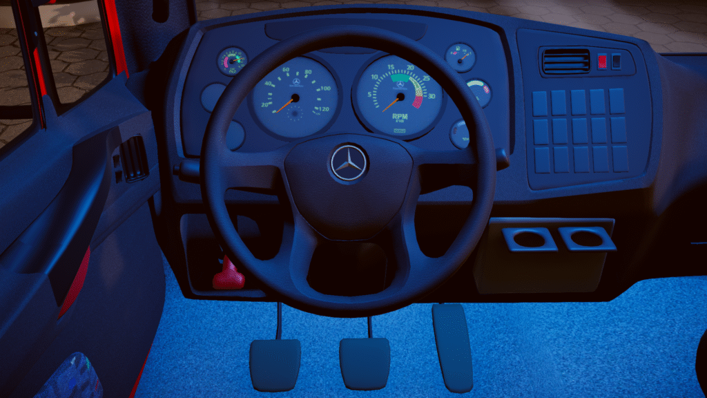 A física foi ajustada para simular o peso e a dirigibilidade de um veículo de carga, com comportamento mais firme, ideal para rodar em mapas rodoviários, áreas rurais ou rotas personalizadas.