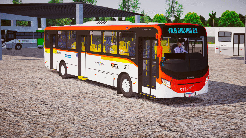 O Caio Millennium V, montado sobre o chassi Volvo B250R Euro 5, é reconhecido pelo design moderno, bom nível de conforto e excelente desempenho em operações urbanas. Nesta versão no padrão Recife/PE, o mod reproduz com atenção o esquema visual característico, o interior urbano e os detalhes operacionais dos veículos que circulam na cidade, proporcionando uma experiência imersiva e fiel à realidade local.