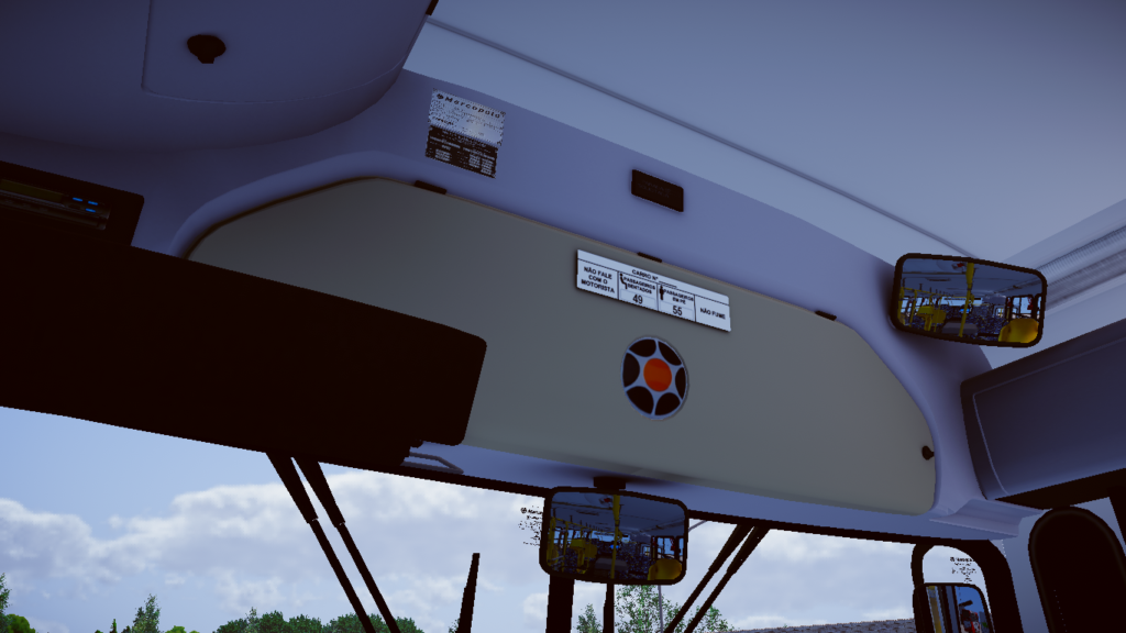 Fotos internas do veículo: sendo painel, identificação de veículo e empresa, além do salão de passageiros com validadores reais e com animação