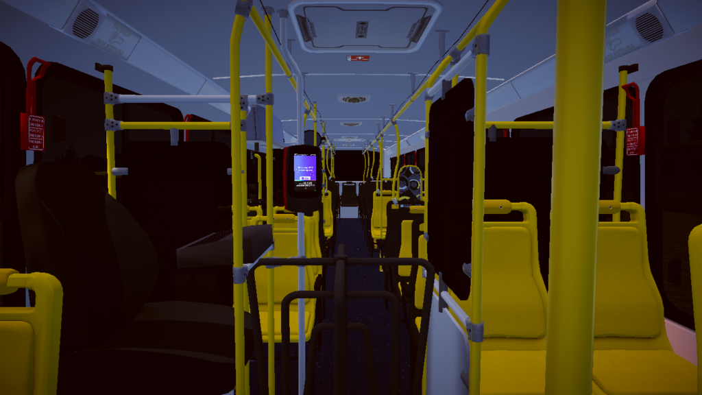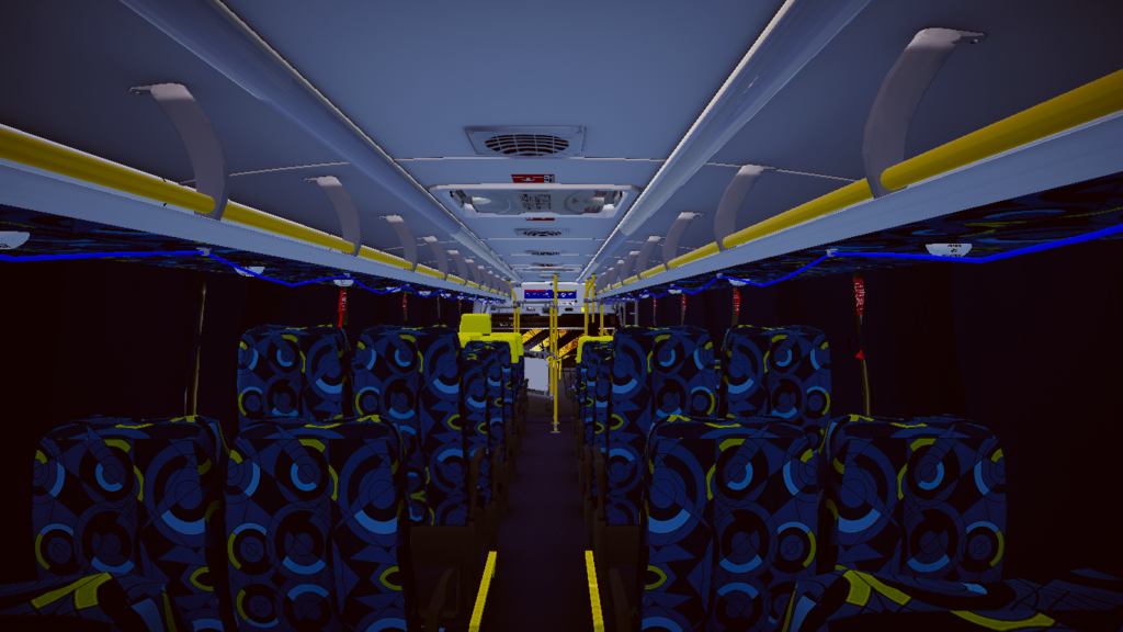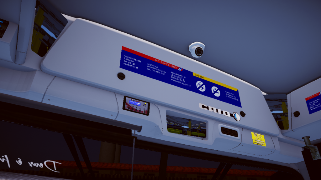 Fotos internas do veículo: sendo painel, identificação de veículo e empresa, além do salão de passageiros com validadores reais e com animação