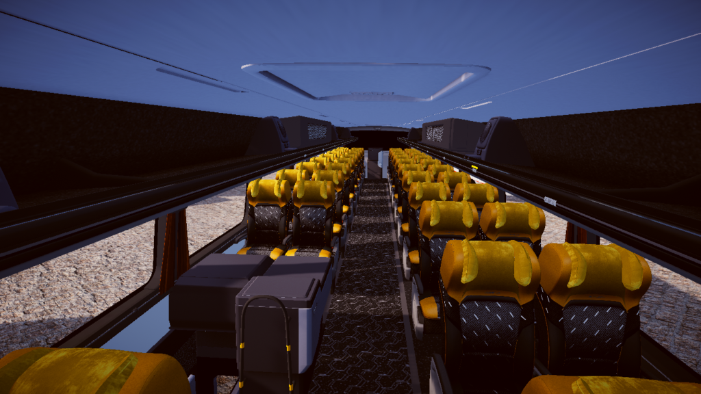 O nível de detalhamento é um dos grandes destaques, com interior bem elaborado e inspirado em configurações reais, incluindo diferentes categorias de poltronas e ambientação mais sofisticada. Em modelos reais, esse tipo de veículo pode contar com dois salões de passageiros e alto nível de conforto, reforçando a proposta premium do mod.