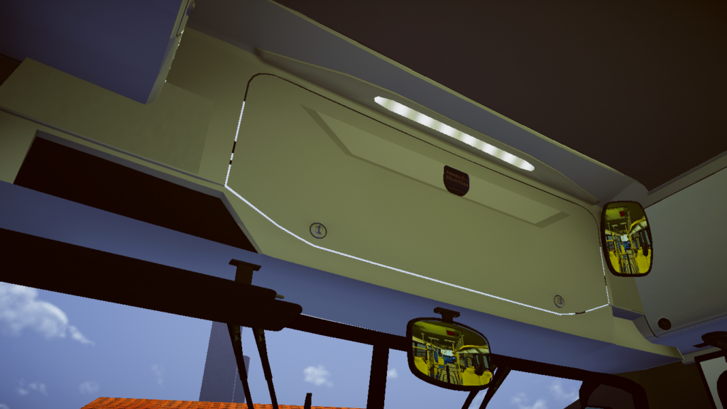 Fotos internas do veículo: sendo painel, identificação de veículo e empresa, além do salão de passageiros com validadores reais e com animação