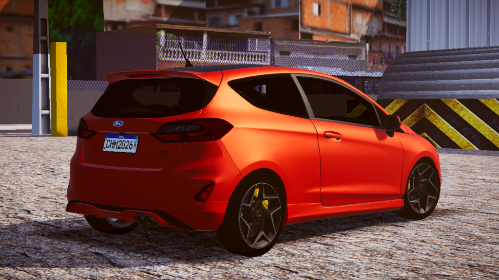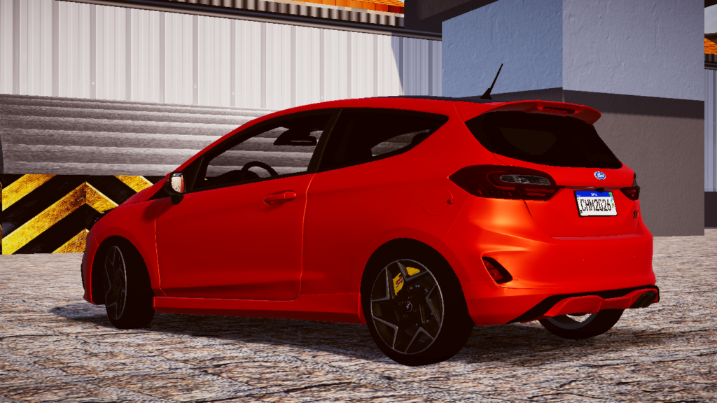 No quesito estrutural, a carroceria do Fiesta ST destaca-se pelo seu design aerodinâmico e linhas agressivas, características marcantes da divisão esportiva da Ford. Neste projeto, a modelagem externa é perfeitamente alinhada à sua plataforma mecânica de alto desempenho, refletindo as proporções exatas de um veículo compacto focado em agilidade, potência e eficiência urbana.