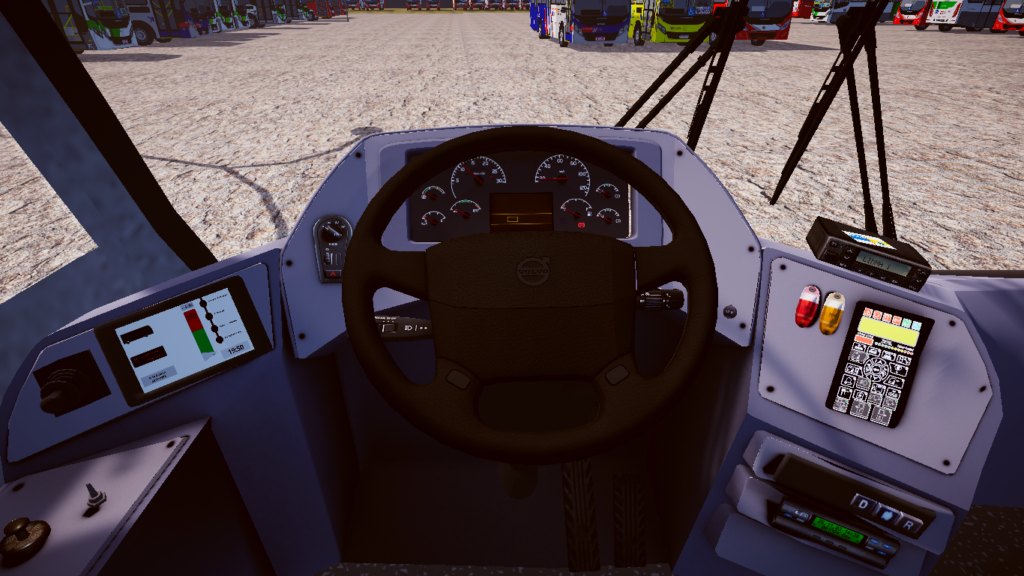 Por fim, a dirigibilidade foi ajustada para simular com precisão o comportamento dinâmico do chassi articulado nas ruas virtuais. A física aplicada garante uma condução equilibrada e responsiva, permitindo ao jogador sentir o peso do veículo, o funcionamento contínuo da articulação nas curvas e o torque e som característicos do motor central Volvo durante as acelerações, frenagens e manobras de aproximação nas estações e terminais.