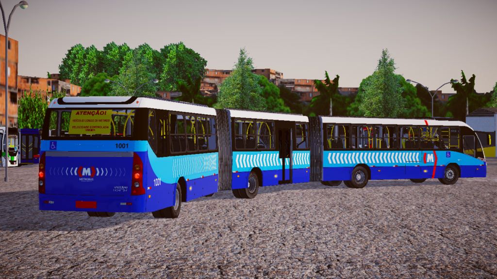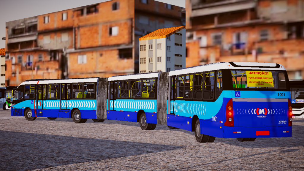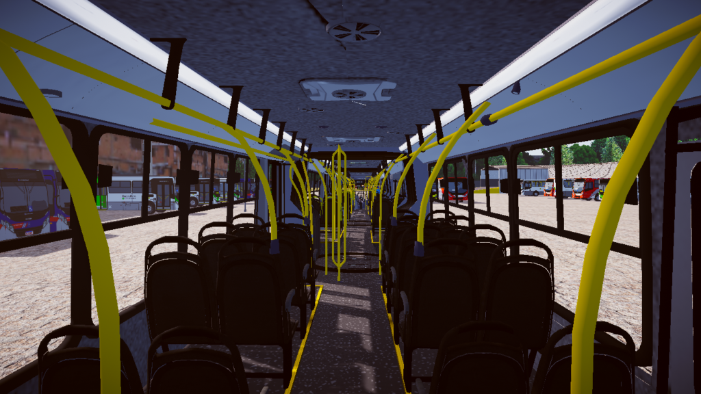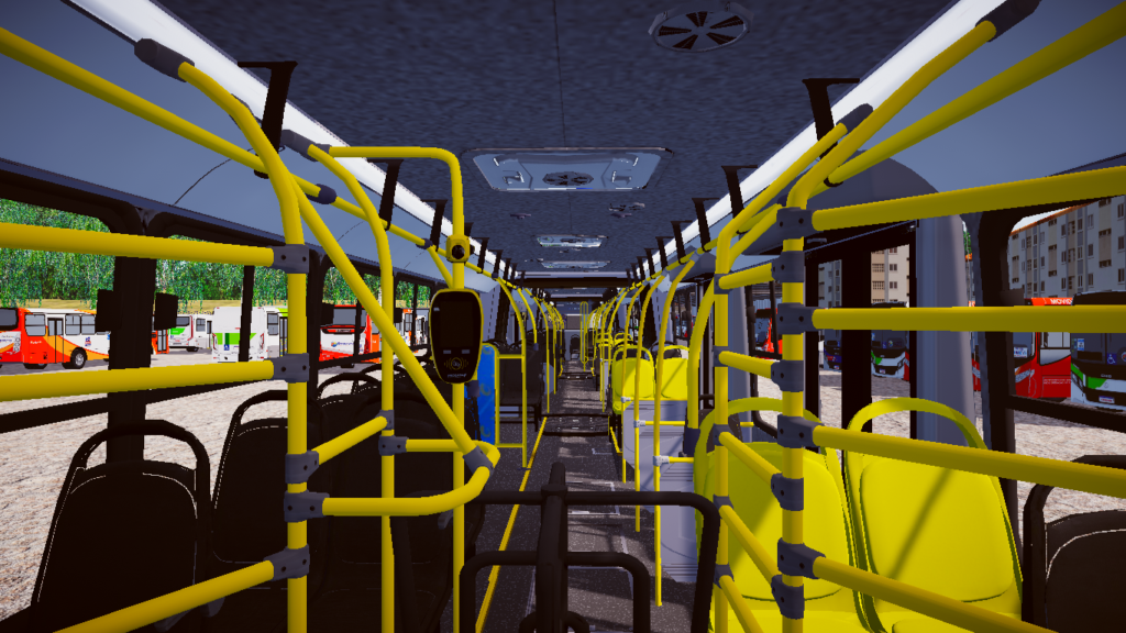 O nível de detalhamento é um dos grandes diferenciais desta modificação. A modelagem foi elaborada com foco rigoroso na fidelidade visual, apresentando texturas e acabamentos que respeitam exatamente a identidade visual e as características operacionais da frota padrão de Goiânia/GO. Desde o amplo painel de instrumentos até a disposição interna do salão, área da sanfona e exterior imponente, cada elemento foi cuidadosamente trabalhado para oferecer uma representação autêntica do modelo original.